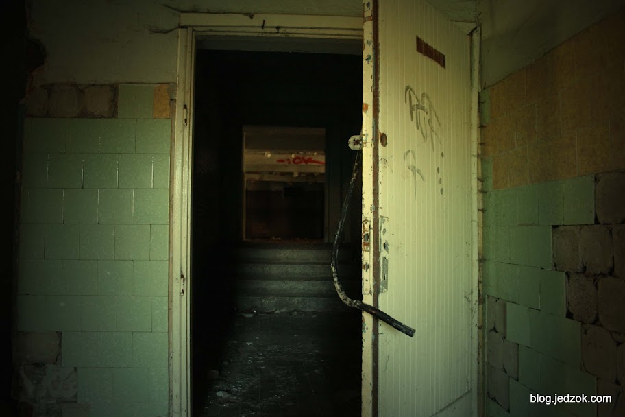 Schodząc w dół minęliśmy amfiteatr i doszliśmy aż do budynków administracji i gabinetów lekarskich. W środku znaleźliśmy nie tylko gablotki medyczne i półki, ale też pomieszczenie usłane dokumentami i rozsypanymi kartotekami, w niektórych pokojach natrafiliśmy na stare zabawki.